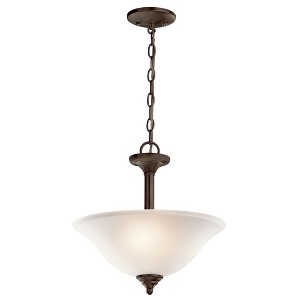 [This review was collected as part of a promotion.] I am truly amazed at the quality and looks of this Armida 2 Light Convertible Inverted Pendant Olde Bronze. I decided to hang this pendant in the foyer, the olde bronze finish compliments the foyer's furniture as well as the walkway into the house. The etched glass gives the light a very warm ambiance making the foyer feels welcoming. The pendant has many luxurious touches such as very neat/clean lines and very simple designs, making this pendant very unique and luxurious. The Kichler Armida 2 Light Convertible Inverted Pendant Olde Bronze is made with very high quality materials and comes with everything you need to hang this beautiful pendant. The installation took less than 30 minutes if you are familiar with electrical items. If you are looking to create a warm ambient with a luxury look, this pendant is a must have in your house. I am in love with my pendant.