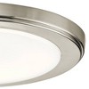 Reduce power costs and promote environmental consciousness with this energy-efficient LED ceiling light. From the Zeo collection by Kichler, this flushmount fixture come in a sleek, stylish design with modern appeal. The brushed nickel finish round frame surrounds a white acrylic diffuser that casts a soft, flattering glow. Perfect for replacing an old hallway light or updating a kitchen space.