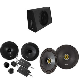 This bundle includes a Kicker 46CSS654 6.5-Inch Component System, Kicker 11PT250 BassStation 10" Powered Enclosure, and Kicker 46CSC674 6.75-Inch Coaxial Speakers.