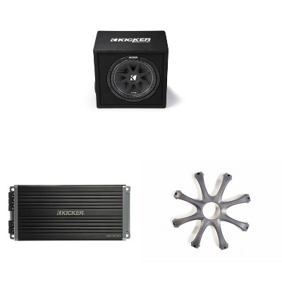 This bundle includes 1x Kicker 46CXA4001 CXA4001, 1x Kicker 47VK8 VK8, 1x Kicker 46CXARC CXARC Remote Control, and 1x Kicker 50VCWC122 CompC 12-inch Subwoofer.