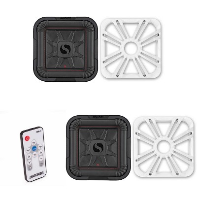 - Kicker CompC Subwoofers: Dual Four-Ohm Voice Coil, Polypropylene Cone, Venting for Thermal Management, Signature Yellow Surround Stitching.