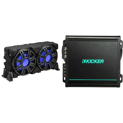 Experience premium marine audio performance with this exceptional bundle combining high-quality sub enclosures and a powerful amplifier designed for marine environments. Boost your boat's sound system with Kicker's reliable and durable components that deliver impressive bass and precise sound reproduction, making every voyage a musical delight.