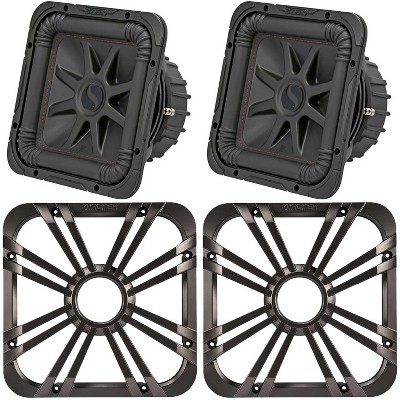 Included in the box: 10" Subwoofer, installation manual, 2 Kicker stickers. The Kicker 10-inch Square Subwoofer Grille in charcoal finish not only protects your Solo-Baric® L7 woofers but also adds a stylish touch with built-in LED lighting. Get ready to elevate your car audio experience with this top-notch subwoofer bundle from Kicker.
