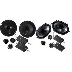 Upgrade your car audio with this comprehensive bundle featuring the Kicker CS-Series speakers. The 46CSS654 CS-Series CSS65 6.5-Inch Component System delivers precise control and stunning musical realism. With titanium tweeters, EVC™ technology, and phase plugs for distortion elimination, these speakers offer remarkable performance. Featuring 300 watts peak power, 100 watts RMS, and an effective frequency range of 35-21k Hz, the CS-Series ensures clear, powerful sound. Additionally, the 46CSS654 includes 12dB crossovers, three tweeter mounting options, and woofer and tweeter specifications to fit most vehicles.The 46CSS684 CS-Series CSS68 6x8-Inch Component System is the perfect factory upgrade with separate titanium tweeters and two-way crossovers. This set is designed for easy installation and precise sound customization. With 225 watts peak power, 75 watts RMS, and an effective frequency range of 40-21k Hz, these speakers offer excellent reliability and acoustic control. The 46CSS684 features 12dB crossovers, EVC™ technology, and three tweeter mounting options for optimal sound production.Both speaker sets utilize heavy-duty motor/magnet structures, EVC™ for deep bass, and polypropylene cones for clean audio reproduction. Give your car audio system a boost with the Kicker CS-Series bundle for exceptional sound quality on the go.
