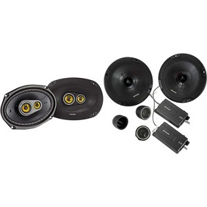 Enhance your car audio experience with the ultimate sound upgrade using this bundle, featuring the Kicker CS-Series Component System and 3-Way Speakers! The 6.75-inch Component System, with titanium tweeters and two-way crossovers, offers precise control and stunning musical realism. The system fits in nearly all vehicles and includes various mounting options for personalized setup. Enjoy rich bass response with Extended Voice Coil technology and neodymium magnets. Perfect for 100 watts of power, the system's UV-treated poly-foam surround ensures precise linear excursion. Specifications include a peak power of 300 watts, effective frequency range of 35-21k Hz, and versatile mounting options for easy installation.
