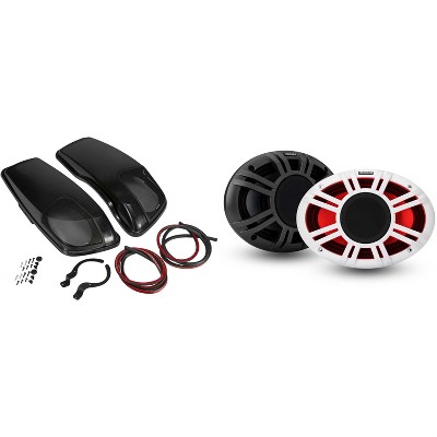 Enhance your Harley Davidson riding experience with this comprehensive bundle that includes the Kicker 46HDBLVB Painted Bag Lids and the Kicker 6x9 Inch PS-Series Powersports Speakers 40PS692.
