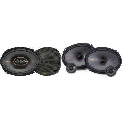 Enhance your in-car audio experience with this comprehensive bundle featuring top-of-the-line Kicker speakers. The package includes the Kicker 51KSS269 KS-Series 6x9" and 2.75" 2-way Component System, along with the Kicker 51KSC504 KS-Series 5.25" Coaxial Speakers.