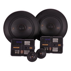 Center StageKICKER KS-Series Speakers let you play at concert-like volume yet maintain the smoothness and subtlety to please even the most selective ear. Internally dampened polypropylene cones and durable rubber surrounds assist the woofers in creating precise midrange and bass while high-quality silk-dome tweeters deliver natural detailed highs. Experience your music as a component system with separate tweeters or as a high-end coaxial system. The woofer's removable bullet-style phase plug is replaced with a special adapter allowing the 25 millimeter silk-dome tweeters to rotate and tilt. You get more system design options and superior off-axis performance.