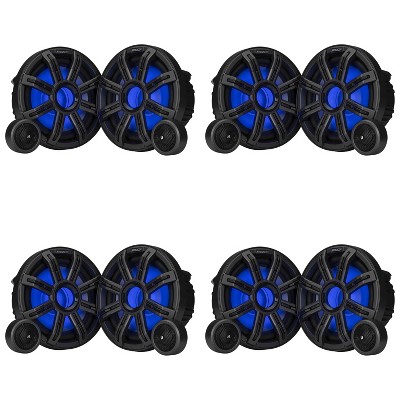 This bundle includes 4x Kicker 51MSS84 - MSS 8-Inch Premium Marine 4-Ohm LED Component System, Pair, and a Kicker LED Light Controller for KM Coax and Sub 41KMLC.