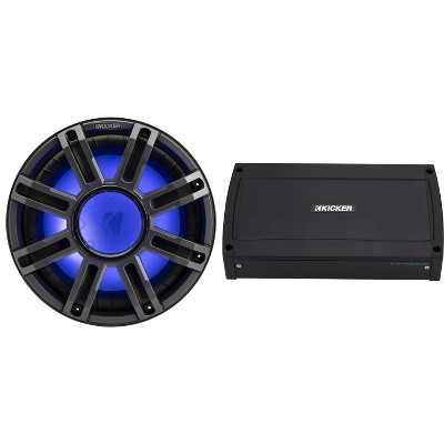 This bundle includes a Kicker 51MWF124 - MWF 12-Inch Premium Marine Subwoofer, a Kicker 48KXMA4002 2x200w 2-Ch Marine Amplifier, and a Kicker LED Light Controller for KM Coax and Sub 41KMLC.