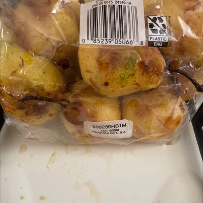 The employee gave me the worst bag they had, the pears were moldy and squished and severely damaged/bruised.