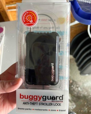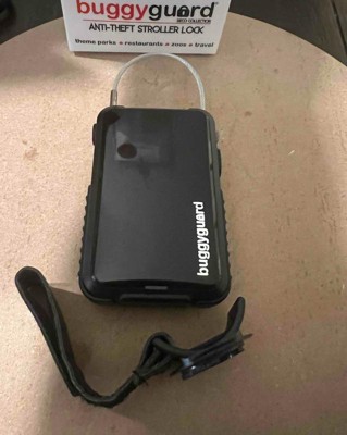 [This review was collected as part of a promotion.] This little buggy guard anti theft device is really awesome. I always keep it on my car seat so I have it where ever we go. Any time I use my stroller the car seat snaps into it so by keeping it there, I always have it handy. I have locked the stroller to benches, poles, you name it. You can set up your own code and then push two buttons on the side to reel the wire out or back in. Very handy. I received an incentive to write this review.
