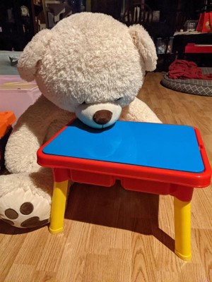 [This review was collected as part of a promotion.] I got this for my almost five-year-old to use with her indoor (kinetic) sand. The hope was that she could stand and play. Unfortunately, the table is much shorter than expected. It maybe more useful for younger kids, but I would not recommend it for anyone above the age of three. The table is great for keeping the sand colors separated, and my daughter enjoys the opportunity to have her sand a little higher. She often closes the lid and use the sand table as a small writing desk. The table is durable, as my kiddo also likes to use it as a chair from time to time and it holds up well. Overall, this isn't a bad little table it just needed some love and a kids imagination to make it great.
