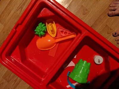 [This review was collected as part of a promotion.] My 5-year-old granddaughter really loves this. You can fill one side with sand and the other with water. It has a little shovel and a little bucket and a couple of other little things with it. She also enjoys it without the sand and water and just plays with other toys in it. It's generally pretty sturdy for being hard plastic. It is just the right size for little ones