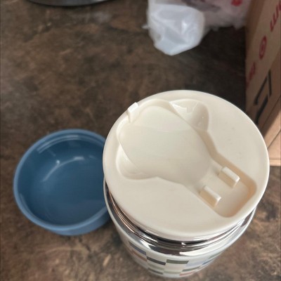 Kids' 10oz Checkered Double Wall Vacuum Stainless Steel Food Jar Blue with Stainless Steel Spoon - Pillowfort™