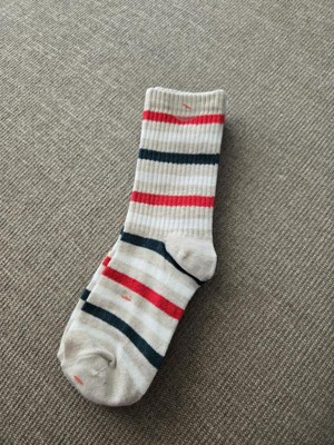 Super cute and snuggly winter socks, these are not too bulky but fit really comfortably to the foot. True to size and easy to get on and off with lots of stretch. It’s nice that the stripes could be worn even outside of the holidays, too!