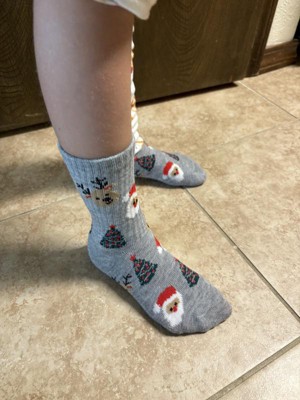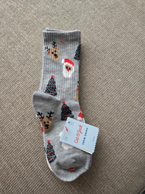 Add festive cheer to your kid's winter wardrobe with the Kids' 2pk Christmas Tree & Santa Ribbed Crew Socks from Cat & Jack™. Crafted from soft, midweight knit fabric, this 2-pack includes two fun and cozy designs featuring jolly Santa and a cheerful Christmas tree. The ribbed crew height provides a snug, comfortable fit, making them perfect for wearing with boots, sneakers or lounging around during the holidays.