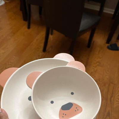 Kids' 2pc Bamboo and Melamine Bear Dinnerware Set Light Brown - Pillowfort™