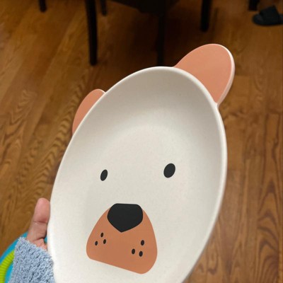 Update your kid's dinnerware with the cute style of the 2-Piece Bamboo and Melamine Bear Dinnerware Set from Pillowfort™. This light brown dinnerware set includes a round bowl and a round plate, both with eyes, nose and mouth detailing for a sweet look. Made with bamboo and melamine, this BPA-free dinnerware set is dishwasher safe for easy cleanup.