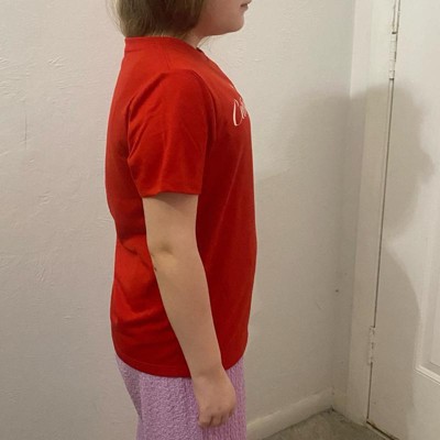 [This review was collected as part of a promotion.] We ordered this shirt in a youth size medium. The fit on it is perfect. The sleeve length is good, it’s got plenty of room across the shoulders and the overall length of it is great. It’s a nice bright red color that pops. The material is lightweight and buttery soft on the skin so it’s comfortable. This is the perfect shirt to lounge around in at home. My daughter loves it.