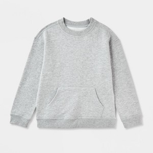 This Adaptive Pullover Crew Fleece Sweatshirt from Cat & Jack™ will keep your kid feeling cozy and confident during cooler weather. Specially designed for sensory needs, this item features flat seams and no tags to eliminate abrasion against the skin. Seams are intentionally chosen to withstand high level activity without irritating the skin. Garment care and size information is provided through heat seal labels, not itchy tags. This garment has also been designed with discreet functional openings to allow access to tubing, small objects or other devices. Functional openings may be hidden inside a pocket or behind a flap to provide more privacy for your needs. Made with cotton-recycled polyester fleece fabric in a heathered gray hue, this crewneck sweatshirt is great for layering over shirts and pairs well with a variety of pants or leggings.