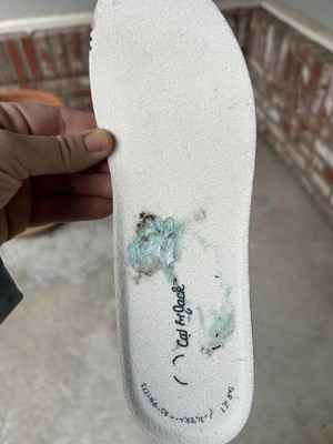 There was sticky mint gum or something inside the shoe which destroyed the insole and my daughter's sock.
