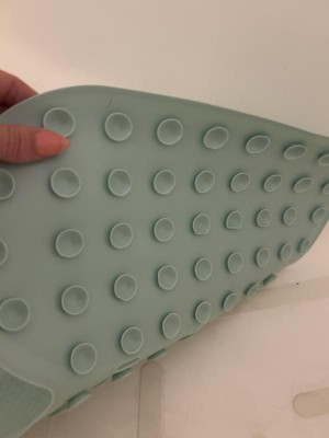 A: The bath mat is made from 100% thermoplastic rubber, providing a soft feel underfoot.