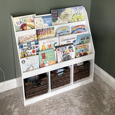 RiverRidge Kids' Playroom Bookrack with 3 Toy Organizer Cubbies and 4 Book Shelves White