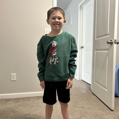 Dress your kids for festive get-togethers with the Kids' Dalmatian Microfleece Holiday Matching Family Sweatshirt from Wondershop™ in Green. This green-colored pullover is crafted from soft, lightweight fabric, offering a soft and warm feel, perfect for keeping kids comfortable. With a regular fit, this crewneck sweatshirt sits neatly at the waist. The long sleeves make it ideal for cooler days, making it an easy piece for quick pairing and matching.