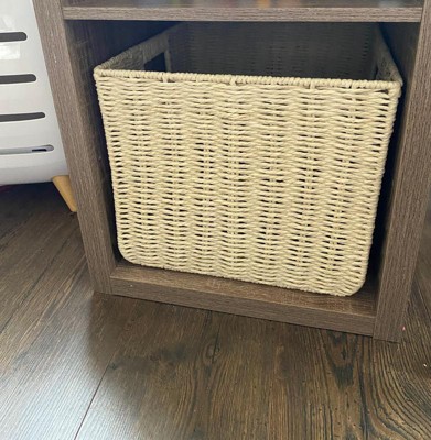 The size of this basket is perfect to fit in 13" storage cube organizers! I love that! It seems durable enough. Time will tell. The lettering is cute, but my toddler did find it easy to remove the letters, assuming they were meant to be repositioned. :)
