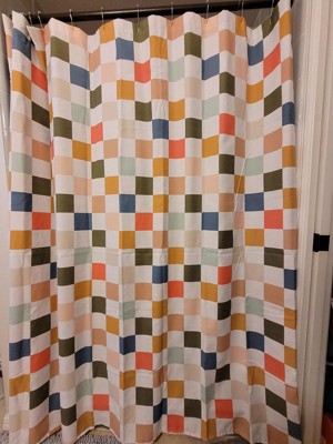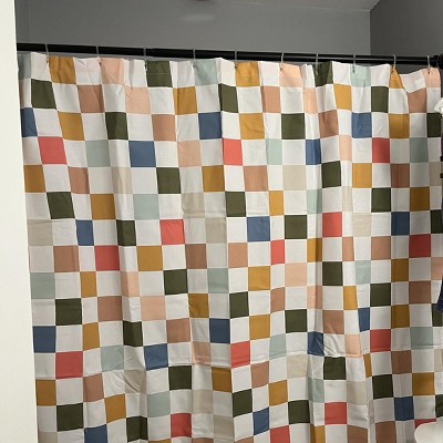 Kids' Shower Curtain Checkered - Pillowfort™: Abstract Pattern, Machine Washable, OEKO-TEX Certified