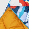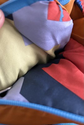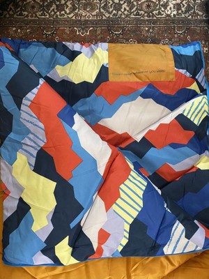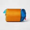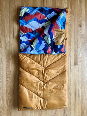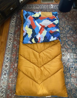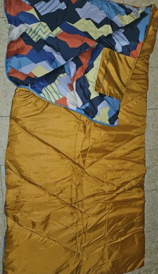 A: Hi friendoboxer - Thank you for the inquiry. The sleeping bag is orange with a colorful geo print inside. Hope this helps! - Kris