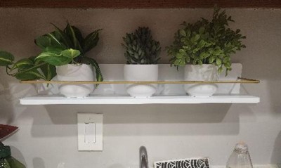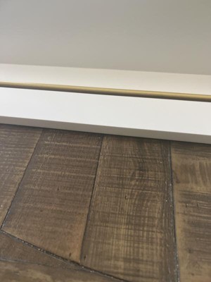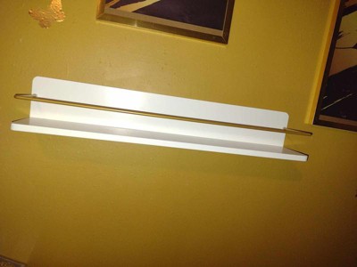 - White wood shelf with gold-tone metal bar