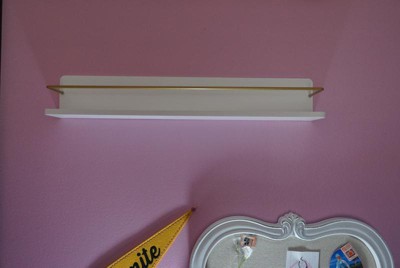 Kids' Wall Shelf White with Gold - Pillowfort™: Floating Decorative MDF Wall Organizer, 24" Wide