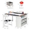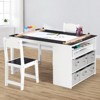 - All-in-1 Creative Station: 35" tabletop fits 2-3 kids for crafts, painting, or homework. Includes paper roll holder, 6 paint cups, and storage bins. Waterproof surface resists stains.