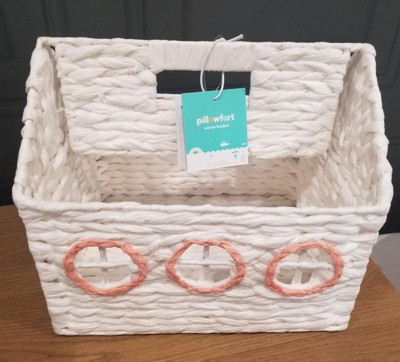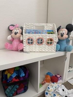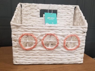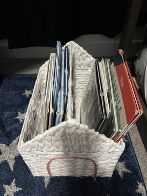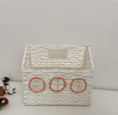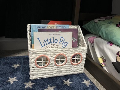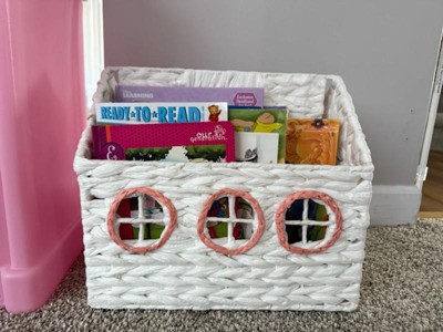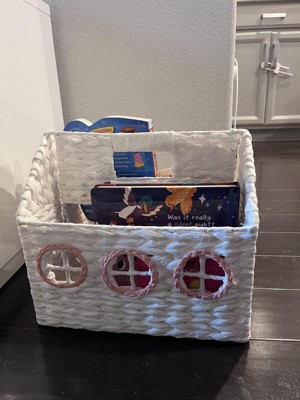 Help your kid keep their books organized for easy accessibility using this House Book Storage from Pillowfort™. Made of paper, this book storage is designed in the shape of a house for a fun and whimsical look. Boasting a weave pattern, this open-top storage basket is great for stashing not only books but also stuffed animals, craft supplies and much more.