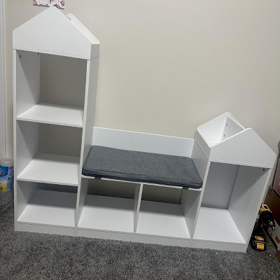 Kids Bookcase, Toy Storage Organizer with Seat, Kids Bookshelf, Wooden Storage Bench Playhouse Cabinet for Kids Room, Playroom, Classroom, Nursery