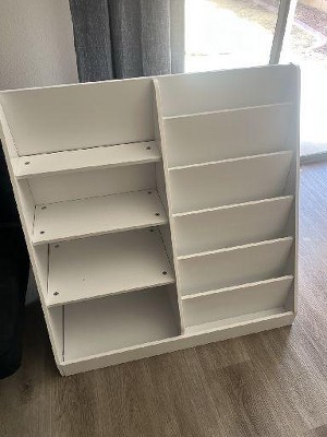 I purchased this for my child’s playroom, and it works wonderfully. The design is simple yet effective, and it’s perfect for holding both books and toys. I’d highly recommend it for anyone with toddlers!