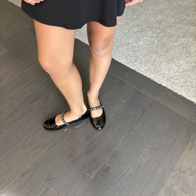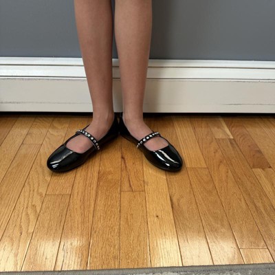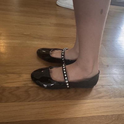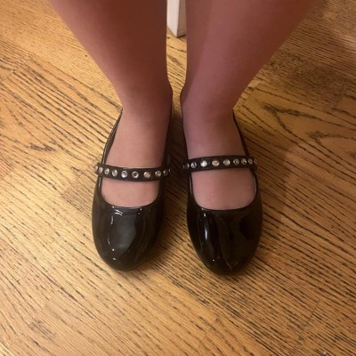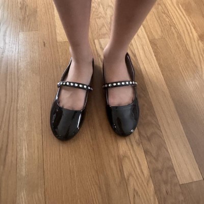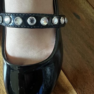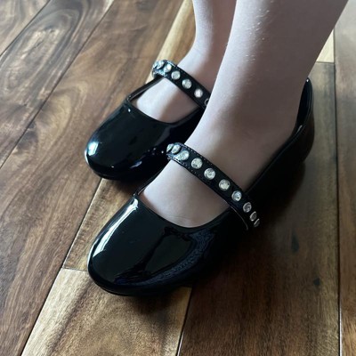 [This review was collected as part of a promotion.] These patent leather shoes are so cute with a bejeweled strap! My daughter usually wears a size 4 in kids or 6 in adult. These are a size 4 and ran very small. She has a narrow foot and these were even too narrow for her. These shoes are flat to the ground and a great pair to elevate an outfit to dress it up a bit or wear to a fancy occasion. Unfortunately these did not fit my daughter so we will have to return and size up. I received an incentive to write this review.