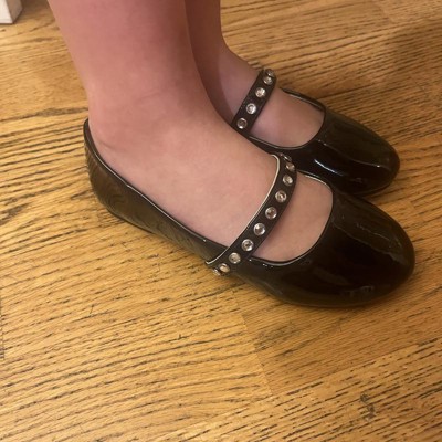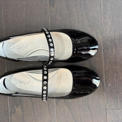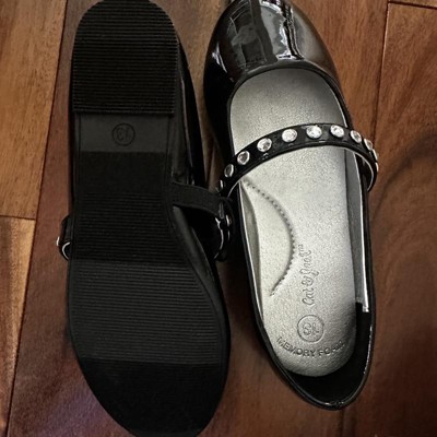 Your kid will step out in effortless comfort and style with these Brooke Ballet Flats from Cat & Jack™. These ballet flats feature a soft insole with arch support for comfortable walking and boast a matching elasticized strap adorned with shiny studs. Designed with a closed round toe, these medium-width flats feature a slip-on style for easy wear.