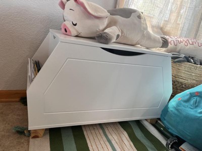 [This review was collected as part of a promotion.] I absolutely love the toy box! The shape is so cute. It has more space then I thought and fits alot. The book shelves on the sides are super convenient for puzzles. Built strong and the wood looks very nice. Definitely adds cuteness to the room!