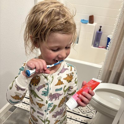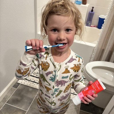 - Kid's strawberry-flavor toothpaste with fluoride