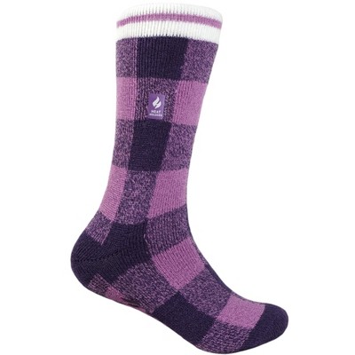 Kids' Sizes US 10-2.5, US 3-6.5Soft, comfortable, and non-binding--perfect for growing feet--the Heat Holders® Kids' Ella LITE™ Plaid Slipper Socks will keep your child's feet snuggly warm on cold winter evenings or at-home days. Includes non-slip grippers on the bottom to provide better traction on indoor wood or tiled surfaces.With a tog rating of 1.6, Heat Holders® LITE™ socks are 5X warmer than a regular cotton sock but in a medium thickness.Made from advanced thermal yarns for softness and warmth and with long pile cushioning, these thermal socks will help keep your child's feet fully cucooned and snuggly warm.The intensively brushed inner not only feels super soft but also traps warm air close to the skin. This keeps your child's feet warmer for longer making the Ella LITE™ plaid slipper sock the perfect choice to keep your child's feet and toes warm at home this winter.