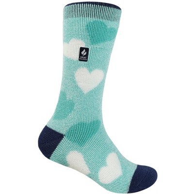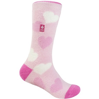Kids' Sizes US 10-2.5, US 3-6.5Soft, comfortable, and non-binding--perfect for growing feet--the Heat Holders® Kids' Harper LITE™ Hearts Crew Socks will keep your child's feet snuggly warm on cold winter days.With a tog rating of 1.6, Heat Holders® LITE™ socks are 5X warmer than a regular cotton sock but with a medium thickness to fit in tighter shoes and boots.Made from advanced thermal yarns for softness and warmth and with long pile cushioning, these thermal socks will help keep your child's feet fully cocooned for a whole day of fun out in the snow. The intensively brushed inner not only feels super soft but also traps warm air close to the skin keeping your child's feet warmer for longer making the Harper LITE™ Hearts bcrew sock the perfect choice for your active child.