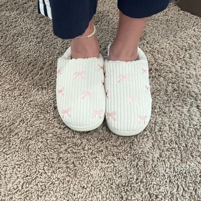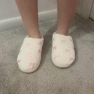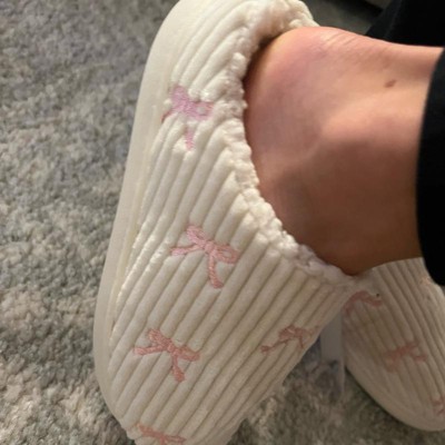 [This review was collected as part of a promotion.] My daughter wears a size 13 slipper. These size 13 slippers were a little small on her so I would recommend going one size up. The slippers themselves are absolutely adorable with a little pink bows on them. My daughter loved how soft and comfortable they were inside. She also loved the slip and style of the slipper. I loved that there was a good grip on the bottom of the slippers. These are the perfect slippers for the fall and winter seasons.