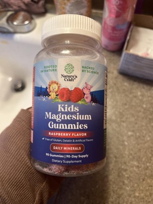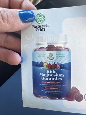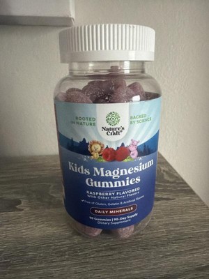 Kids Magnesium Gummies, Calm Relaxing Mag Citrate Supplement, Raspberry Flavor, Nerve Health, Muscles & Healthy Heart Support, Nature's Craft, 45ct