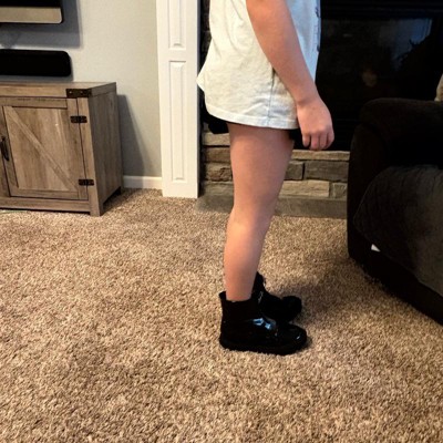 [This review was collected as part of a promotion.] My daughter is nine years old and normally wears a size 4 in shoes. These leather Chelsea boots are so stinking cute. My daughter did say that they were very hard to walk in as they are not very dependable. These would be shoes that I would buy for a Halloween costume or for a special occasion, but not for every day where. There’s a side zipper, which makes them easy to get on and off . I received an incentive to write this review.
