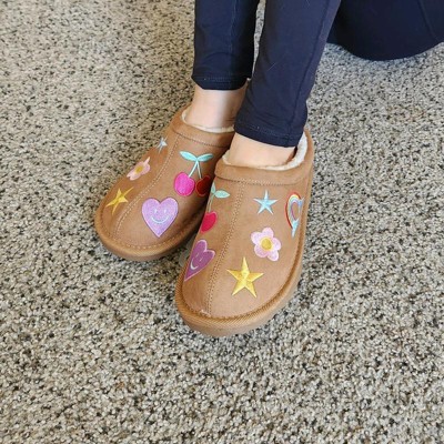 [This review was collected as part of a promotion.] These slippers are so fun. We ordered them in a youth size 3 and they fit perfectly. The base is a standard beige color. The inside is soft and plush and will definitely keep the feet warm. The mule style is easy to slip on and off. These are really comfy my daughter says and the bottom has nice thick rubber grips like a standard outdoor sole. The best part is the cute and whimsical designs on the outsides. Fun and girly. My daughter loves them. I received an incentive to write this review.
