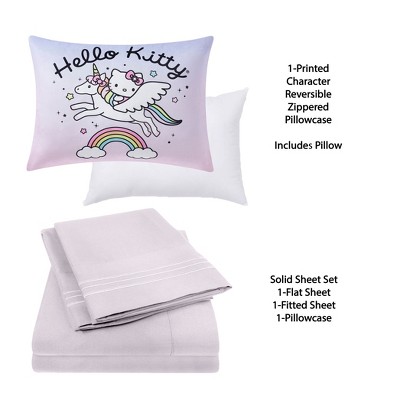 • Twin Size Includes: 1 flat sheet 66" x 94", 1 fitted sheet 39" x 75", 1 pillowcase 20" x 30", 1 Printed Character Pillowcase with Pillow 20" x 26"