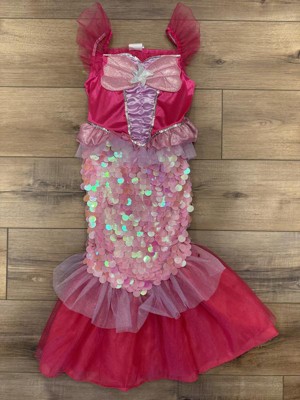 The Kids' Pink Mermaid Costume Accessory Set - Hyde and EEK! Boutique™ M is the perfect size for my 7-year old daughter. The colors are bright and vibrant and she loves the sequins on the lower body into a tail. It’s a good quality and great for dress up year round. I would highly recommend!